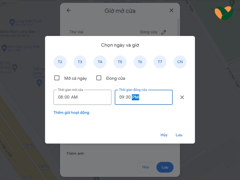 - Giờ hoạt động: Ghi chính xác thời gian mở cửa và đóng cửa.