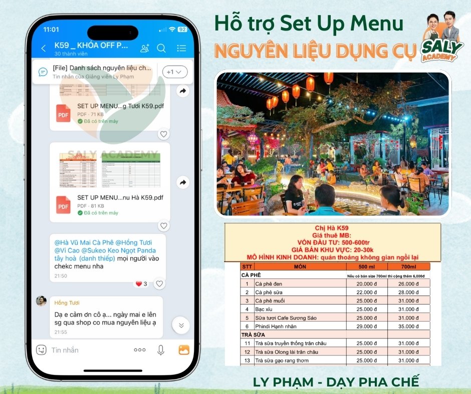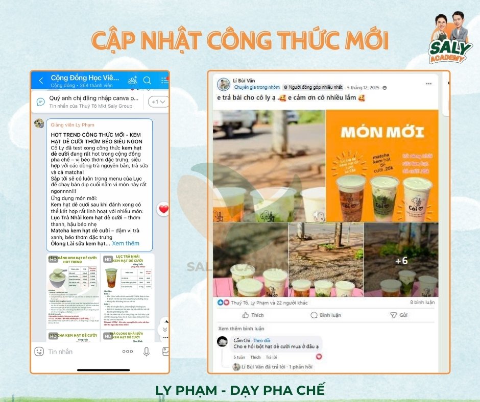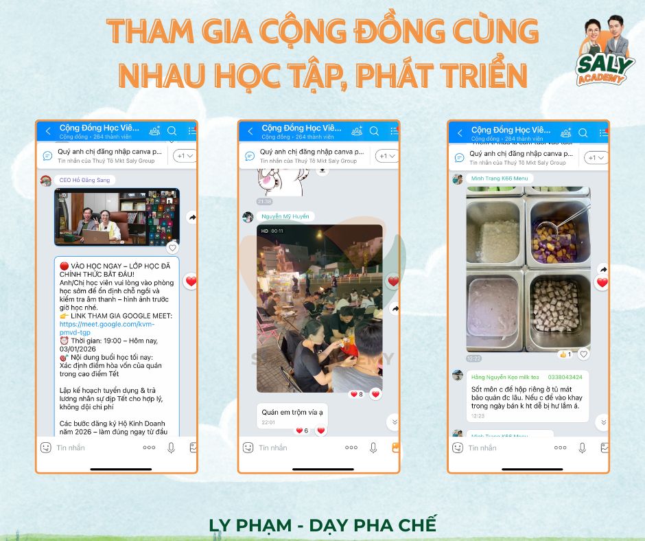 SaLy Academy với định hướng đào tạo thực chiến từ năm 2017, đã đồng hành cùng hàng nghìn học viên mở quán thành công. Học viện còn xây dựng hệ sinh thái hỗ trợ toàn diện (SaLy Shop, cộng đồng học viên), giúp bạn áp dụng kiến thức vào thực tế một cách thuận lợi nhất.