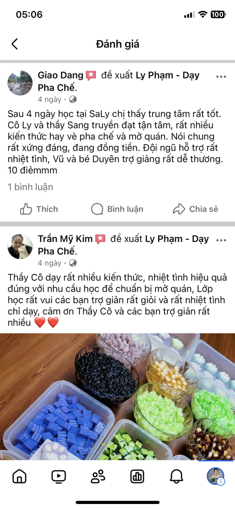 Một số cảm nhận của học viên khi tham gia khóa học Trà sữa tại SaLy Academy